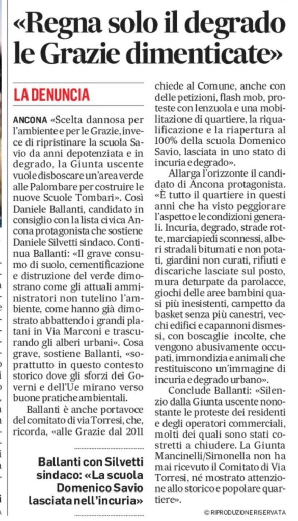 30/5/2021: Il contrasto al degrado e contribuire alla promozione dei quartieri si può, con ogni mezzo… https://www.vivereancona.it/2021/05/31/fai-una-foto-al-degrado-e-con-fotografiamoancona-viene-trasformato-in-segnalazione/967293/