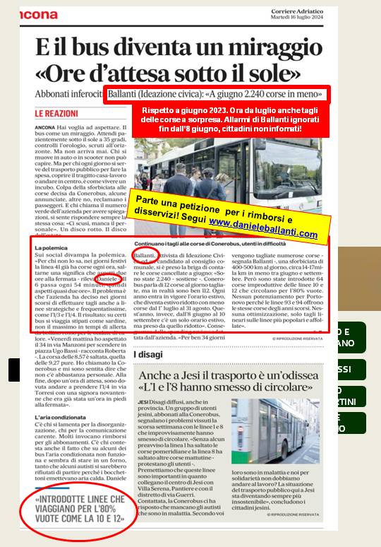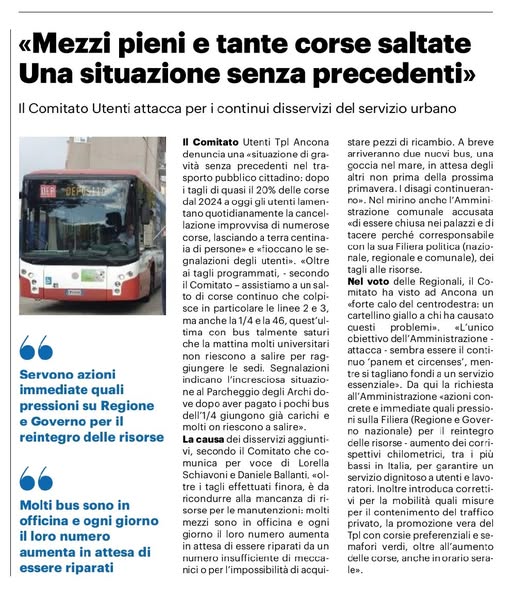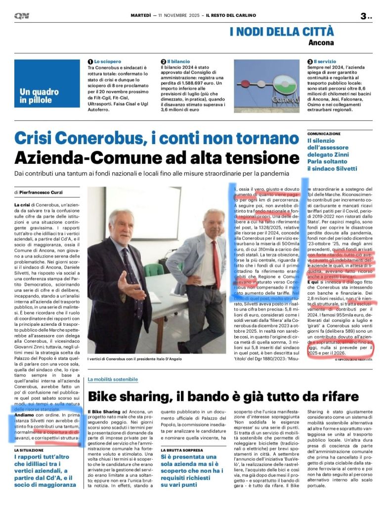 19-10-25: La crisi di Conerobus. Contro tagli e disservizi raccolte subito 500 firme https://www.ilrestodelcarlino.it/ancona/cronaca/la-crisi-di-conerobus-contro-53de516d?1760860503&fbclid=IwY2xjawNt5vRleHRuA2FlbQIxMQABHsTXzLrY7AfAa7XjbDlwEV77OKc9ycEtv95kFUEYtlf9hovnYU_CQmfFi2CF_aem_87K4JmbF783uEfPFrpl7mA