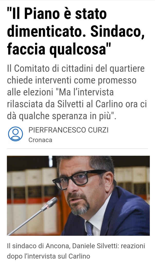21-9-25: Dopo l’intervista del Sindaco sul Corriere Adriatico.it e su Ancona – Il Resto del Carlino il giorno dopo della grande assemblea il Comitato di Cittadini del Piano e Grazie con rispetto risponde al Sindaco: vedi pagina i miei comitati