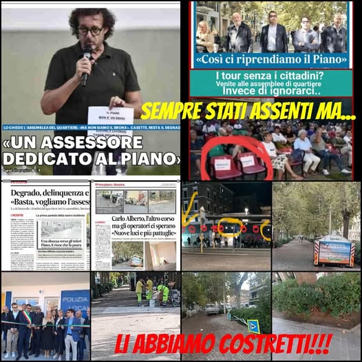 13-10-25: Abbiamo costretto l’Amministrazione (Sindaco, Vicesindaco, Assessori, Consiglieri comunali e vari della corte) a muoversi dai palazzi e mettere i loro candidi piedini al Piano per dare risposte alle nostre richieste ignorate da due anni e quattro mesi. La prossima volta però sarebbe auspicabile che prima di arrivare avvisassero i cittadini e i comitati cosicché possano parlare con tutti quelli che si vedono privati della loro presenza all’assemblea del 18 settembre scorso.. Praticamente hanno realizzato le nostre richieste, nemmeno la metà di quelle chieste, ma noi ce le attestiamo! Abbiamo vinto sul disinteresse di due anni e mezzo!