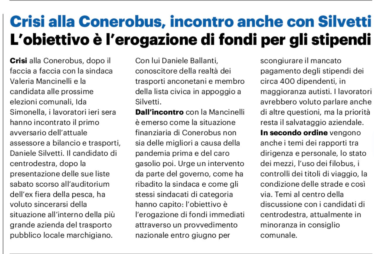 19-10-25: La crisi di Conerobus. Contro tagli e disservizi raccolte subito 500 firme https://www.ilrestodelcarlino.it/ancona/cronaca/la-crisi-di-conerobus-contro-53de516d?1760860503&fbclid=IwY2xjawNt5vRleHRuA2FlbQIxMQABHsTXzLrY7AfAa7XjbDlwEV77OKc9ycEtv95kFUEYtlf9hovnYU_CQmfFi2CF_aem_87K4JmbF783uEfPFrpl7mA