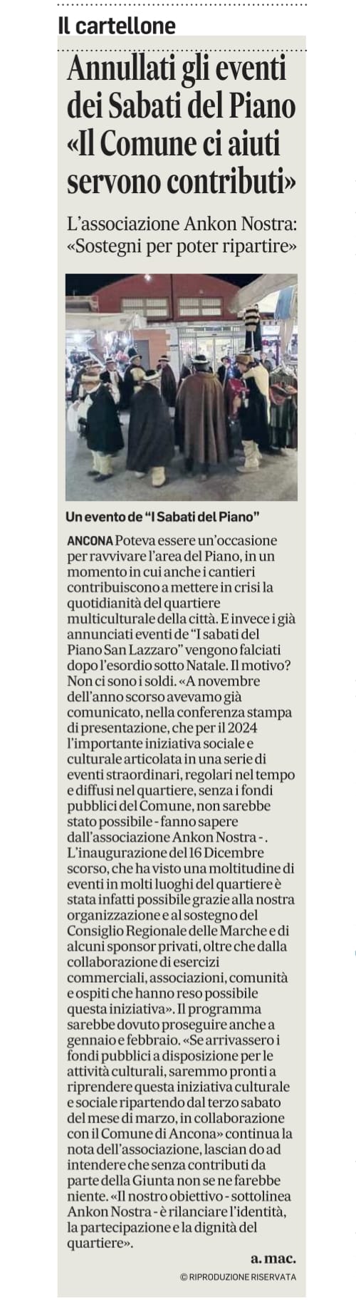 27/12/19: Ankon nostra, Ballanti: ”Si chiude un anno proficuo. Molti gli eventi in agenda per il 2020”: