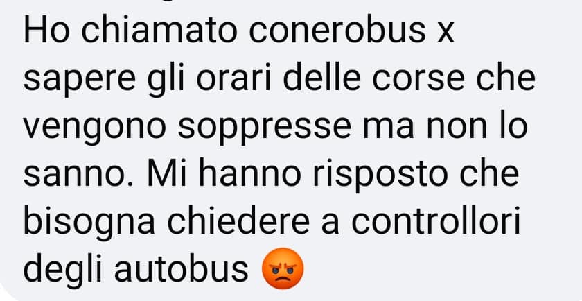 Con i tagli di Conerobus decisi dalla destra, oggi meno bus, più attese e più gente alle fermate, tempi di percorrenza ristretti con conseguenza corse saltate e bus stracolmi! Ci sentiamo dopo..