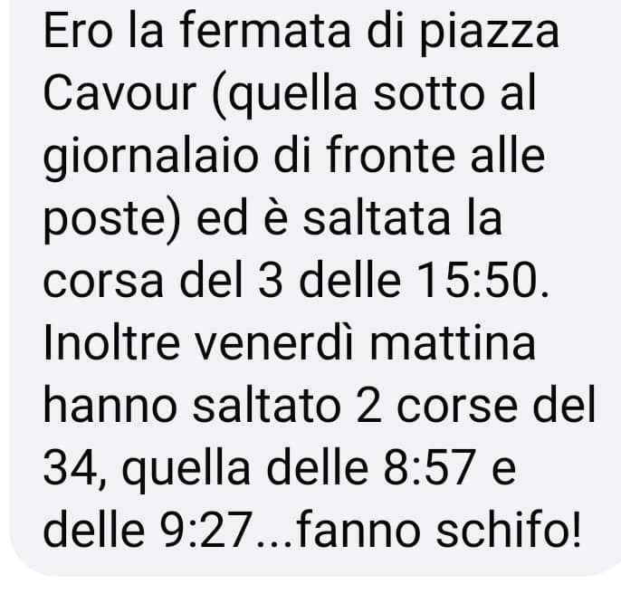 SMENTISCO categoricamente di aver messo le mani nei tempi di percorrenza delle corse bus e nei turni del Personale viaggiante! Quando ho ricevuto i dati preliminari (solo gli orari che avevano redatto) io ho solo fatto INSERIRE più corse e salvaguardare dei collegamenti che avevano tagliato!… ![]()