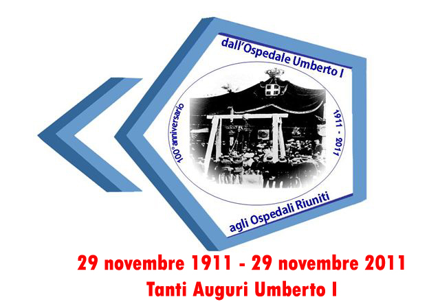 E’ stato pensato ed ideato anche ad un logo che esprimesse il senso del centenario, dove accanto alla foto storica della posa della prima pietra (in bianco e nero) e, dentro il pentagono degli Ospedali Riuniti, si evidenziasse il Presidio Umberto I con la scritta 100° anniversario e le date 1911-2011 ed un riferimento al passaggio dall’Ospedale Umberto I agli Ospedali Riuniti.