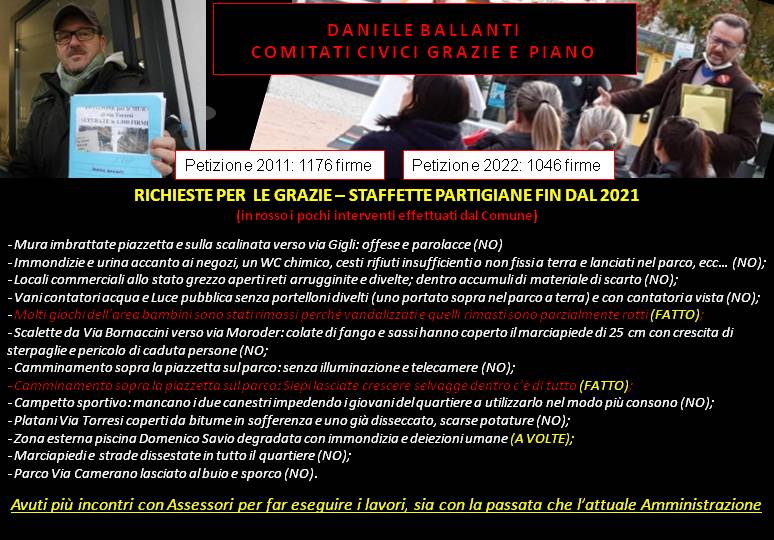 Su richiesta di molti residenti è stato fondato un secondo Comitato allargato al Piano San Lazzaro, Stazione, Vallemiano, Scrima, chiamato Comitato di Cittadini del Piano e Grazie e il Portavoce di entrambi è Daniele Ballanti, unico referente storico ufficiale di entrambi e capofila di ogni battaglia civica nei quartieri. Questo viene sottolineato per evitare che qualcuno spacchi l’unità dei Comitati con operazioni veramente poco utili ai Cittadini.