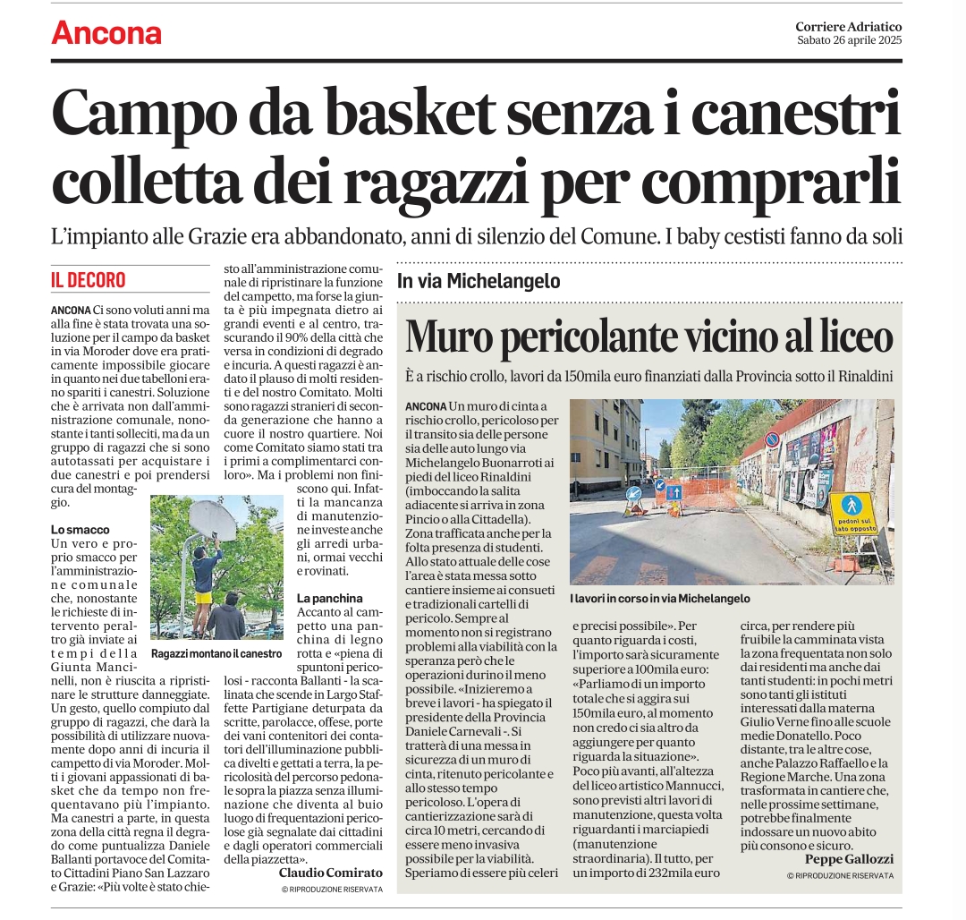 26-4-25: copertura della stampa sui volontari e Comitato Piano San Lazzaro e Grazie