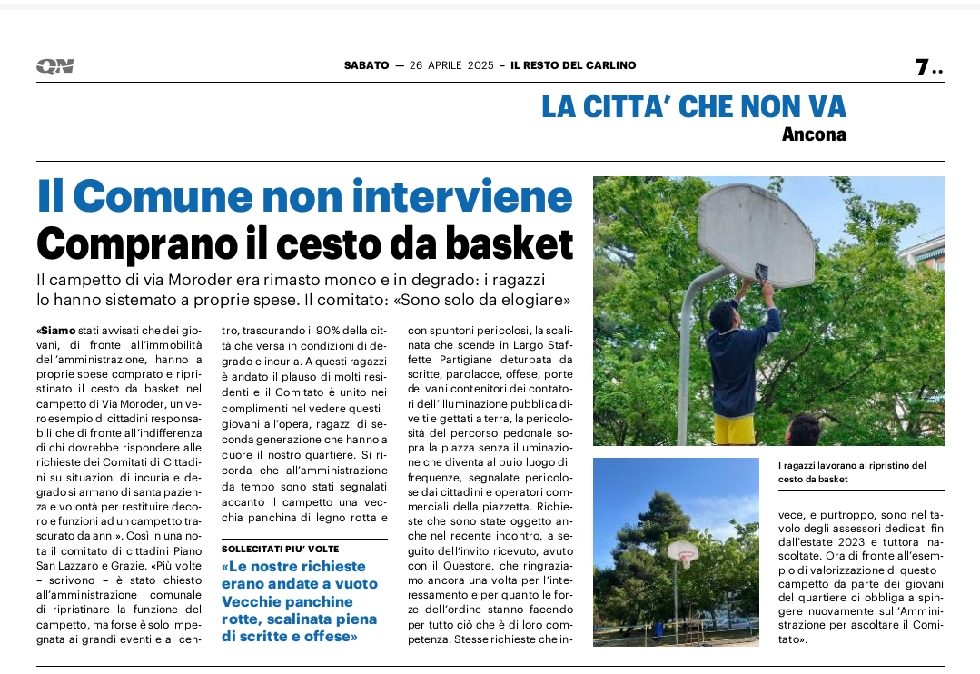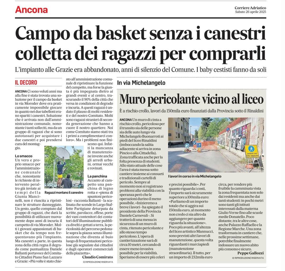 🙏‼️🙏 Ringraziamo Ancona – Il Resto del Carlino per l’interessamento. Il Comitato di Cittadini del Piano e Grazie è stato costituito due anni fa per portare la voce dei Cittadini all’attenzione della stampa e dell’Amminstrazione. In campagna elettorale abbiamo invitato il Sindaco sul territorio al Piano e alle Grazie e nei mesi successivi fatti incontri con gli assessori dedicati.