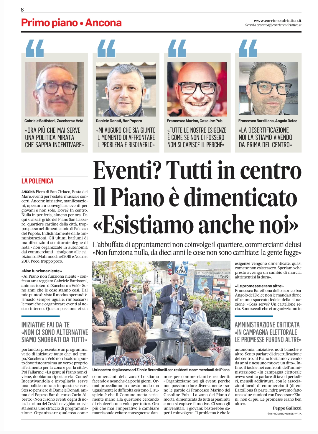 Ci abbiamo provato in tutti i modi a interloquire con l’amministrazione (ricordo che io sostenni Silvetti attirandomi anche il biasimo di taluni e in cambio dai suoi fui per giunta ostacolato e “sterilizzato”) , ma sostanzialmente essa è occupata ed interessata solo a promuovere il centro; il Piano ad essa non interessa cosiccome non interessa loro chi ci abita e lavora, nonostante il fiorire di idee e passione che se non sostenute dal Comune muoiono.