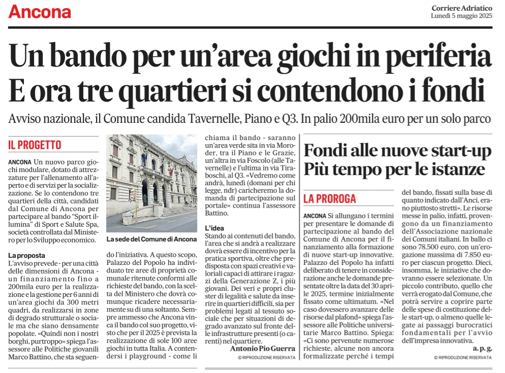 5-5-25: Il bando: Forse una sola area su tre individuate e solo se Ancona vincerà il bando per avere 200.000 euro del Ministero. Ma miseri 57,00€ non li aveva il Comune?