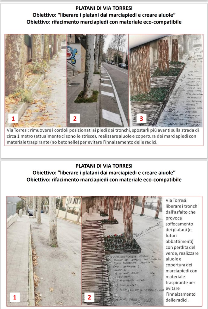 Il tempo dell’attesa concesso è terminato, oggi apprendiamo che nonostante faccia parte del pacchetto delle richieste all’Amministrazione un altro platano in Via Torresi è dissecato perché soffocato dall’asfalto (mentre a Falconara l’Amministrazione ha realizzato piccole aiuole per tutelare il verde pubblico).