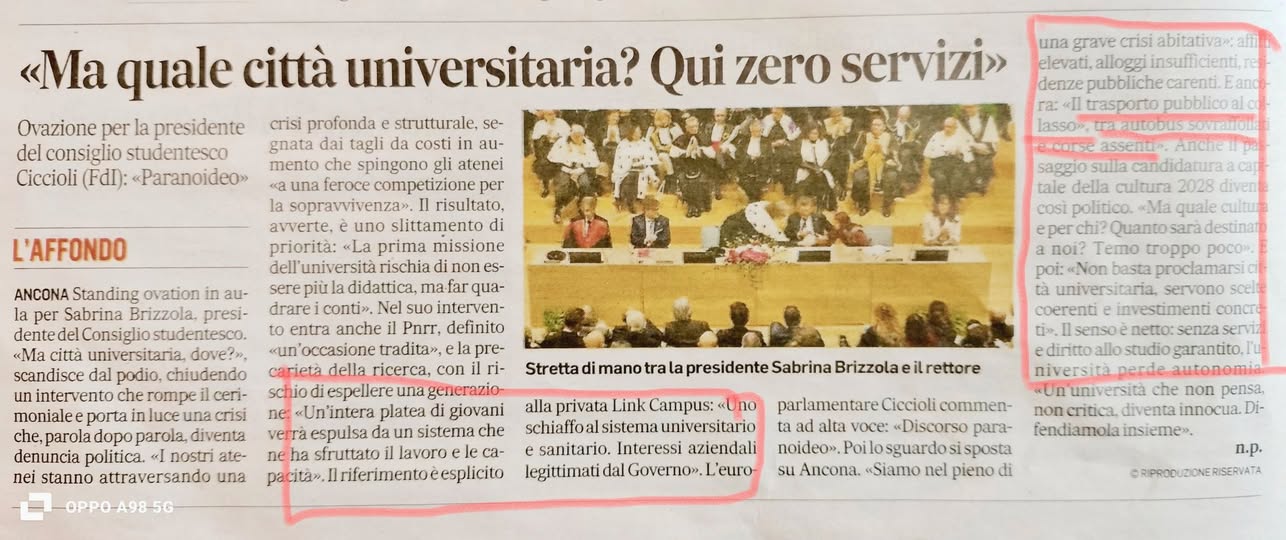 23-12-25: Ancona “Città Universitaria” a metà: studentati isolati dopo le 22.15. Siamo seri, gli slogan sono vuoti se poi manca la sostanza.. Aprire studentati per attirare studenti e non garantire collegamenti per muoversi (anche per i residenti che ne usufruirebbero) non è per nulla attrattivo… La proposta a costo zero di Daniele Ballanti per garantire il servizio bus serale: https://vivere.me/gpOR