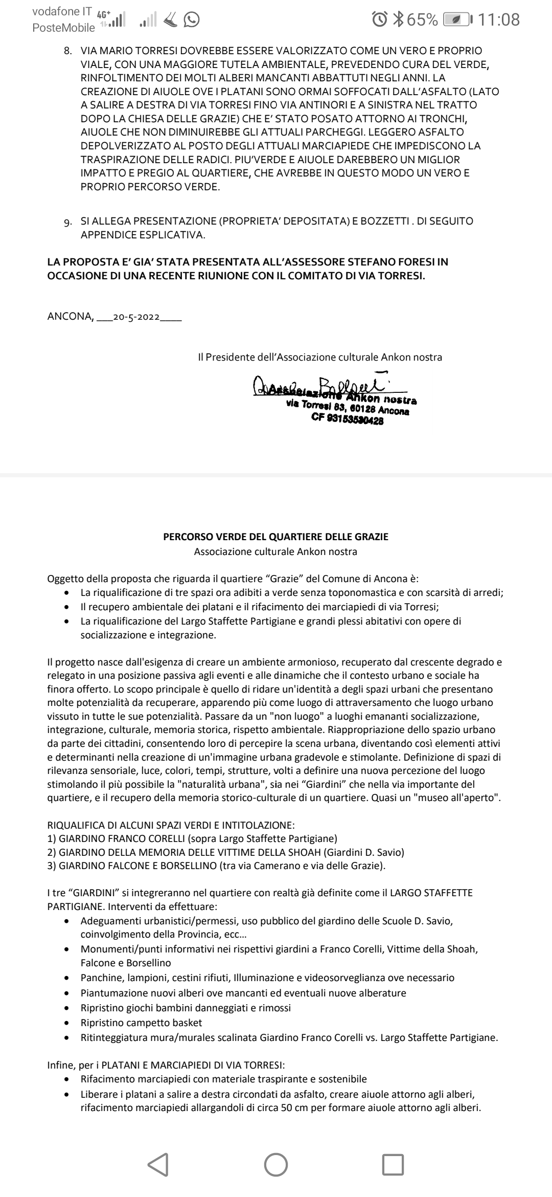 Fondatore di: Associazione culturale Ankon Nostra, Movimento Ankon Civica Verde e Popolare, Comitato Cittadini di Via Torresi e Comitato di Cittadini del Piano San Lazzaro e Grazie